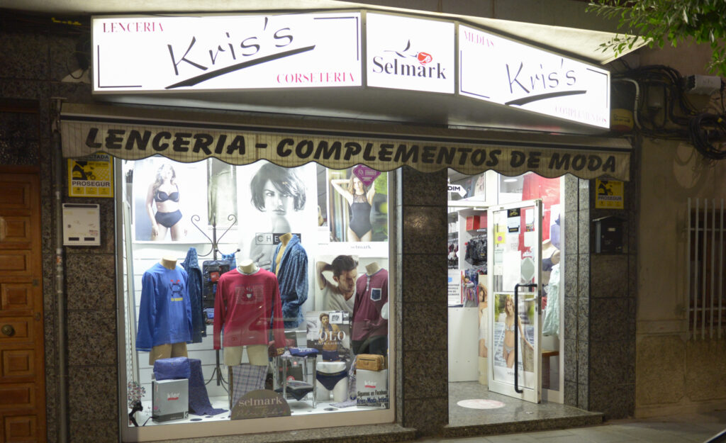 Anterior Siguiente moda & complementos Kriss Moda Íntima 683 597 191 encarna27n@gmail.com De Lunes a Sábado de 10:00 a 13:30 y de 17:00 a 20:30. Calle Mayor, 223. Alcantarilla. Murcia. Kriss Moda Íntima Kris Moda Íntima nace en 1993. Ubicada en el barrio de Campoamorde Alcantarilla, es una tienda especializada en moda íntima para hombre […]